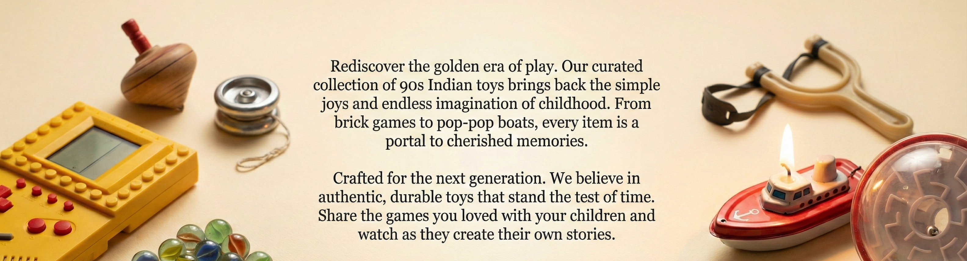 - The days of cassette tapes, slam books, gully cricket, and the toys that defined our childhood. Every product we bring is chosen to help you relive those pure, simple moments of joy. Because childhood isn’t just a memory… It’s a feeling we all deserve to experience again. Whether you’re reliving your own childhood or introducing it to your kids, we’re here to keep those memories alive—beautifully, joyfully, and forever.